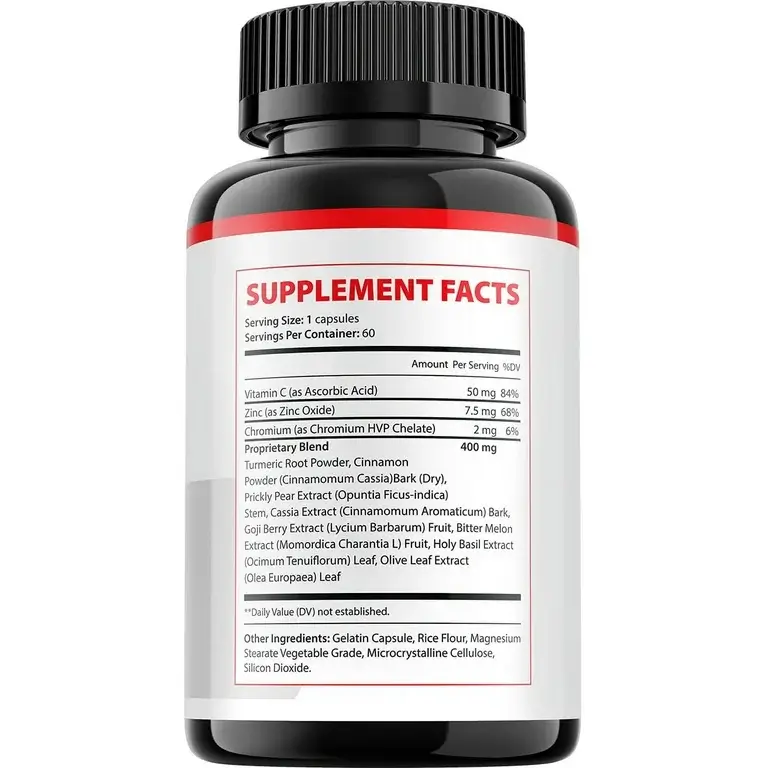• Contains plant extracts such as bitter melon, cinnamon, gymnema sylvestre, and banaba leaves, recognized for their properties in supporting glucose balance.